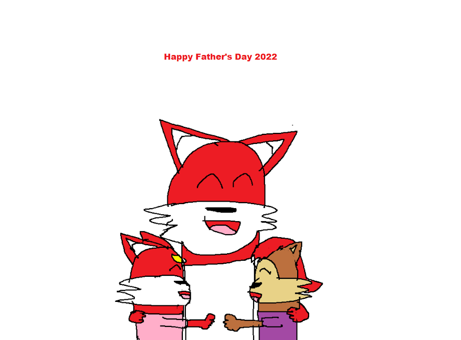 Jeremy Crimson gets a hug from his and Sally Acorn's daughters, Sakura, the vixen with the cresent moon birthmark, and Makoto, the squirrel whose hair is as red as her father's and sister's fur.