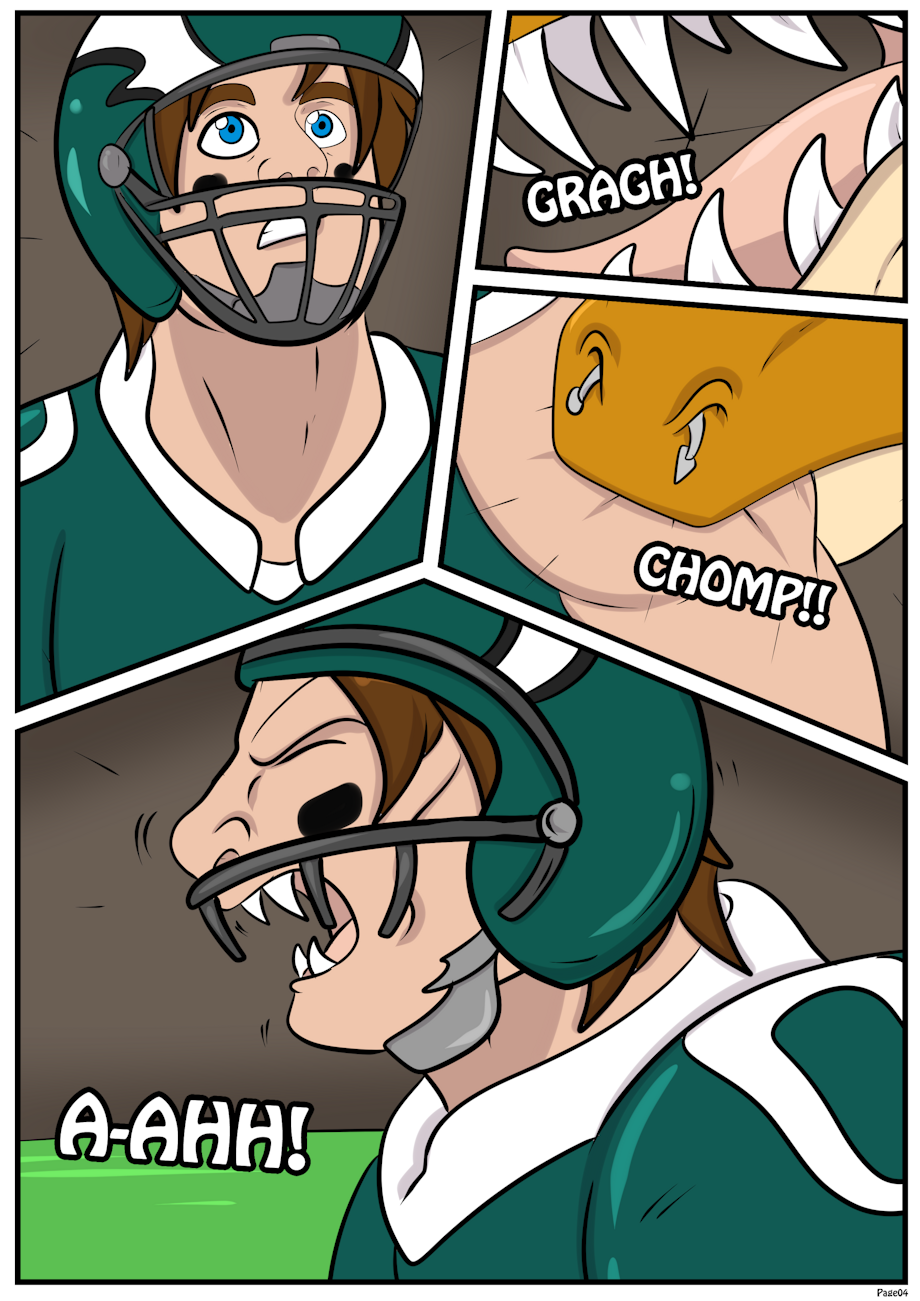 I looked up just time to see Rancid's large snout, filled with very sharp teeth, which promptly chomped down on my arm. The transformation took hold quickly, and I screamed as my mouth pushed outward. It grew large, sharp teeth, destroying my face guard!