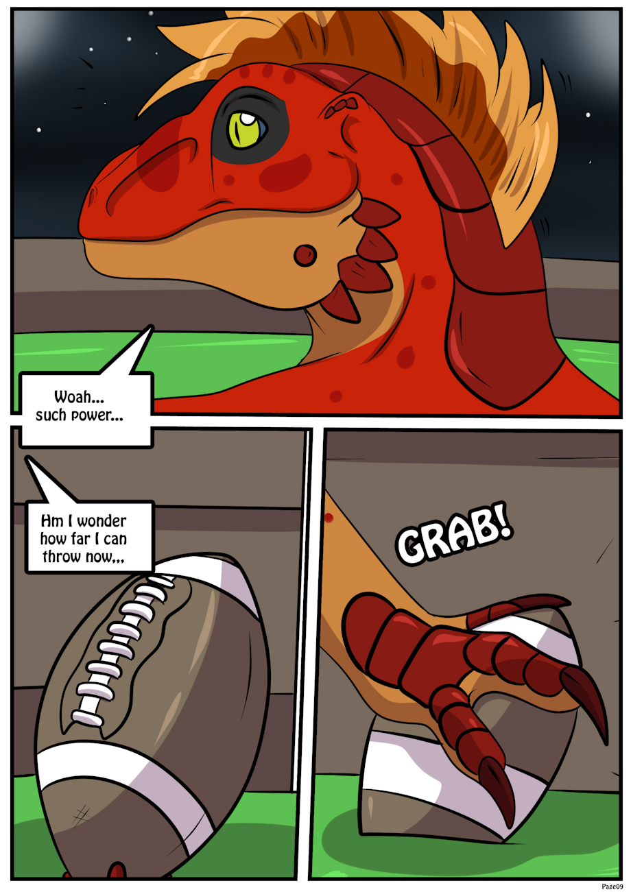 I grunted as my compression pants tightened, thanks to a new large appendage growing from my behind. My pants could hold no longer, and a large raptor's tail burst from them!