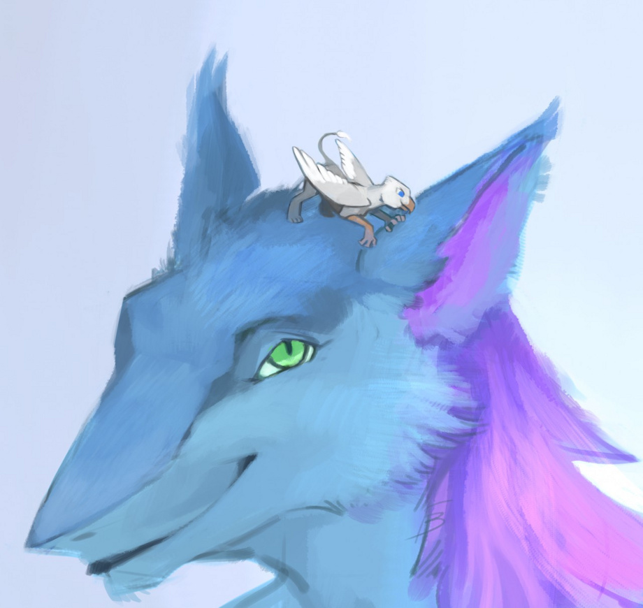 Gyro Sergal getting his fur preened by Der. Not sure it works like that burb.