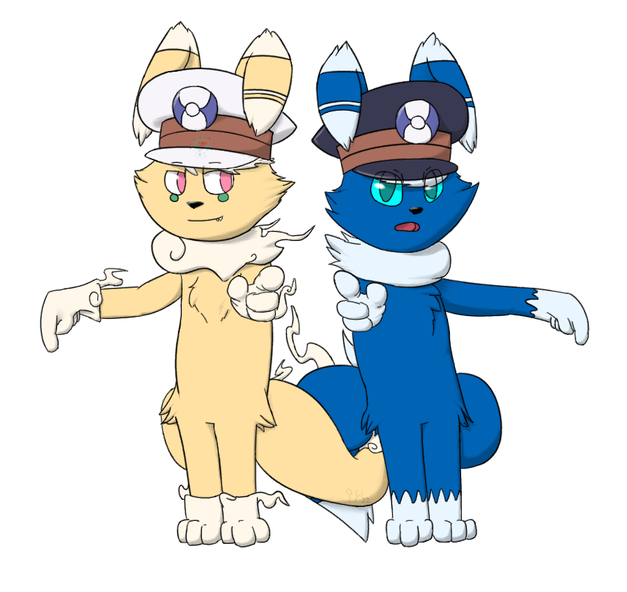 I've been seeing these two Meowstic a whole lot lately, so it was only a matter of time 'til I drew them - and in Emmet and Ingo's pose, no less! Tem and C (who's really into it) belong to