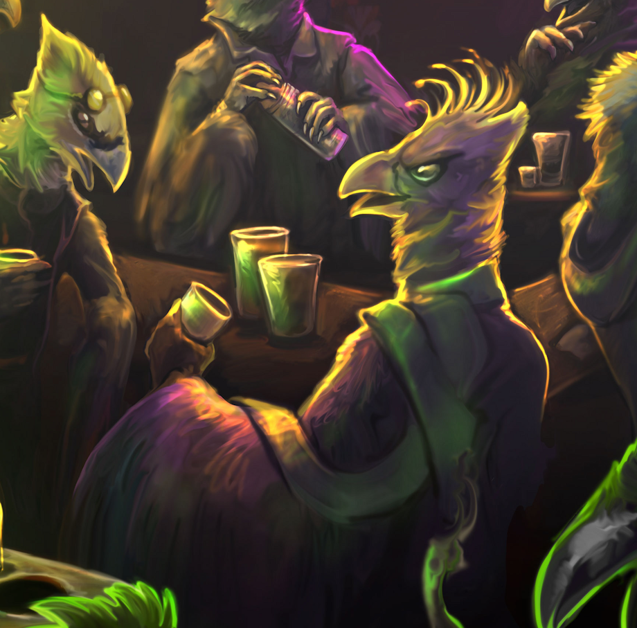 Gyro Bird at a bird bar.