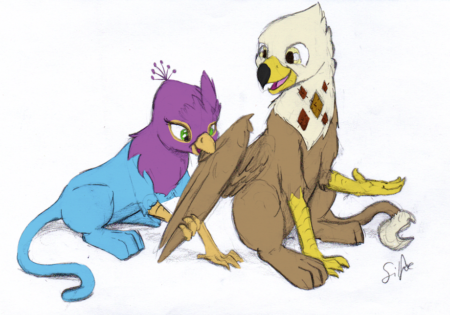 Gyro Feather is giving Argle a nice preening.
