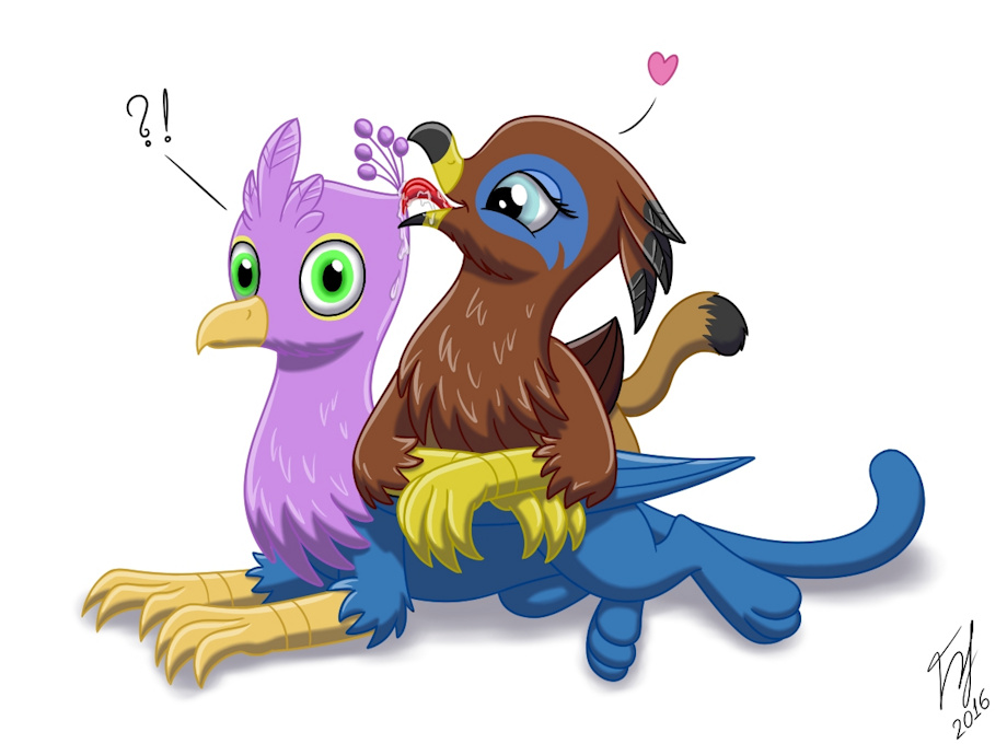 Gyro Feather is a little confused by Saewin's surprise lick.