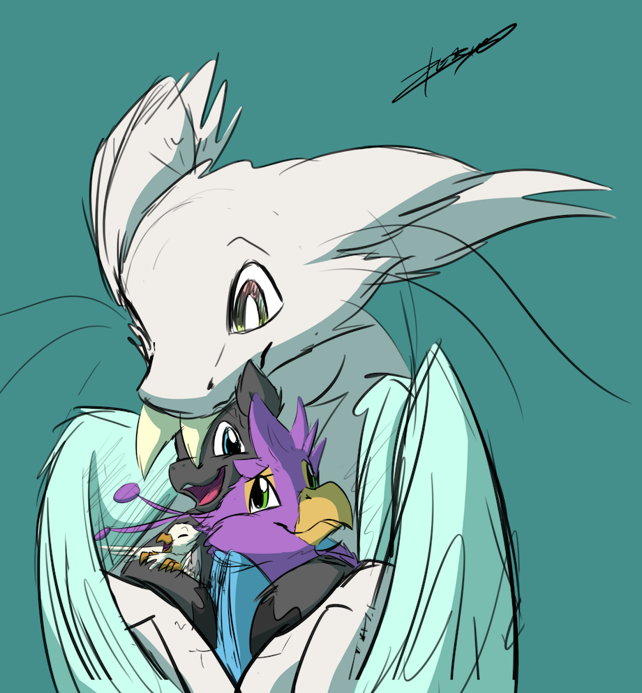 Xeirla cuddling Gyro Feather, Floofy, Der.