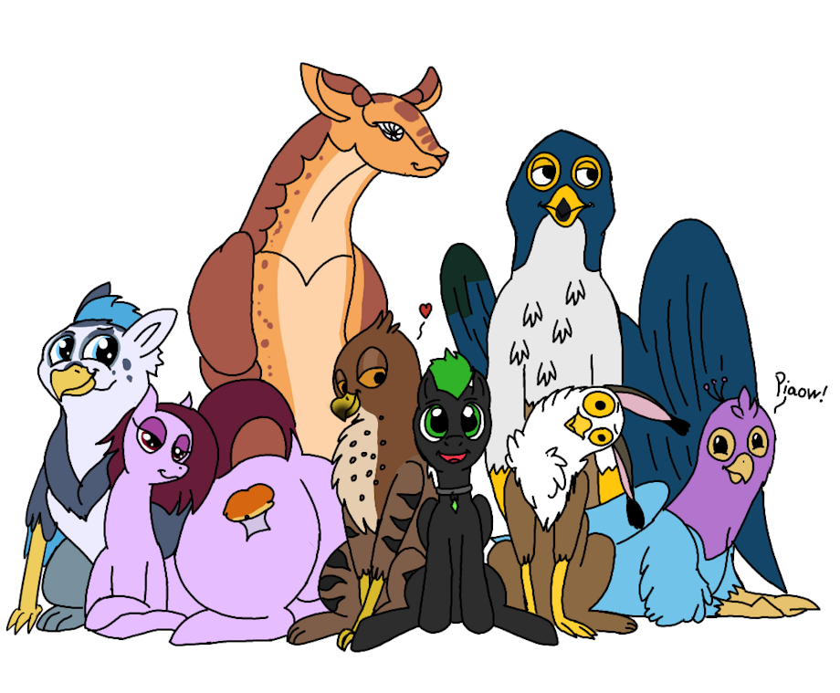 Gyro Feather and a bunch of other birds and creatures hanging out together.