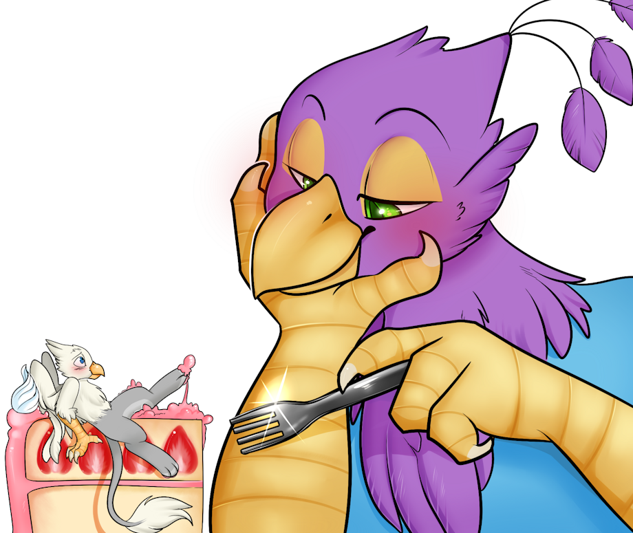 Gyro Feather is enjoying Der on a cake. I'm sure this won't go anywhere problematic for the bird.