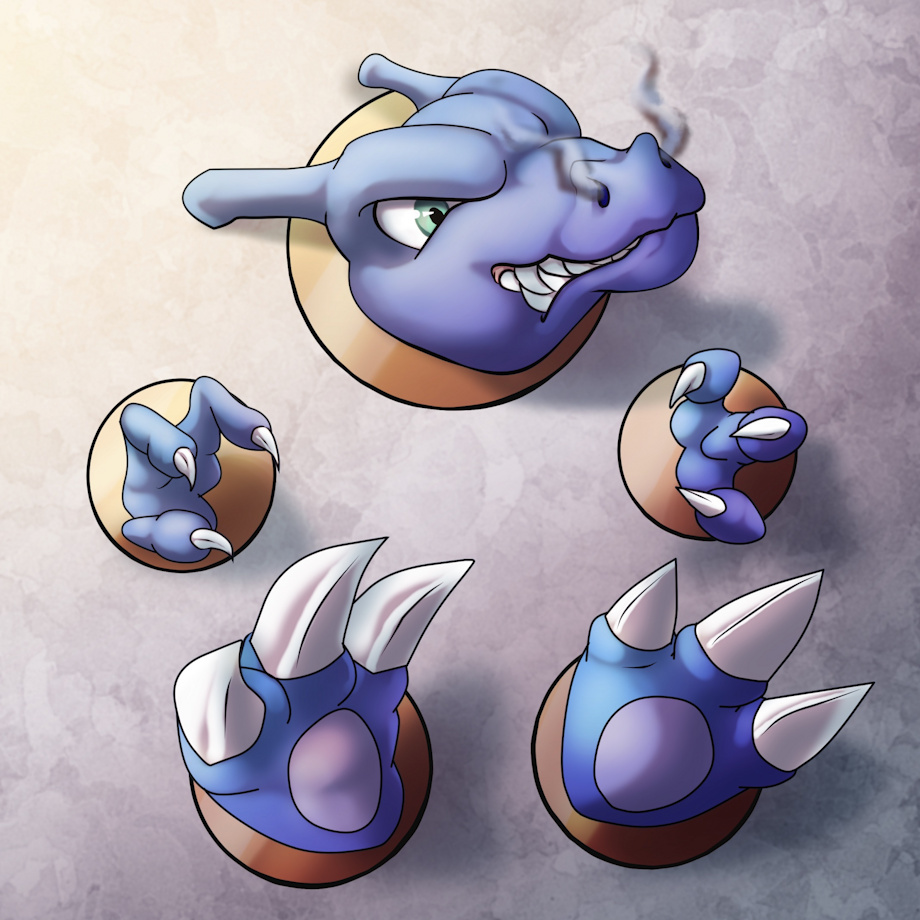 Okay, I have no idea how, but my Charizard got himself stuck in the wall. He’s literally trapped in there good. Only parts of Charizard popping out are his head, feet and hands. He’s constantly twisting and Turing his limbs to get free, but Charizard is stuck in the wall pretty snug. Now I just need to figure out how I’m going to get him out.
