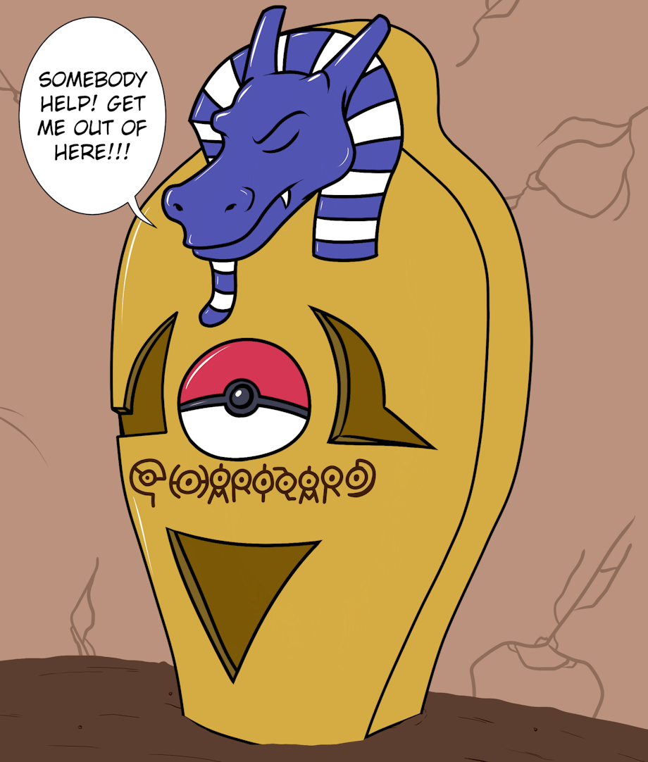 So my Charizard has been cocooned in Webs and is being sealed in a Sarcophagus. The lid of the casket resembles Charizard. No matter how hard he tries, Charizard is unable to escape.