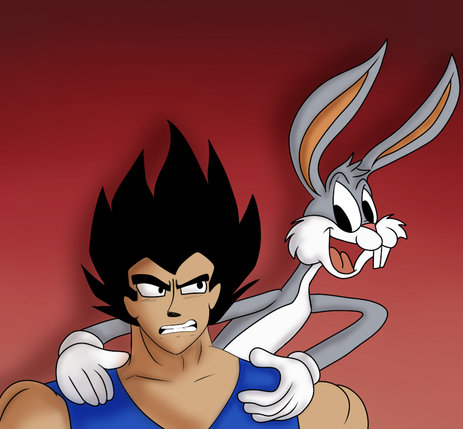 So in 5th grade a teacher asked me to make up my own comic using Bugs Bunny and Vegeta because she noticed how much I loved Dragon Ball Z. If memory serves me correctly it involved Bugs pissing off Vegeta with a bomb and then Vegeta blasts Bugs. I don't have the comic anymore but I did make a drawing of both characters interacting. A remake could happen though. 🤔