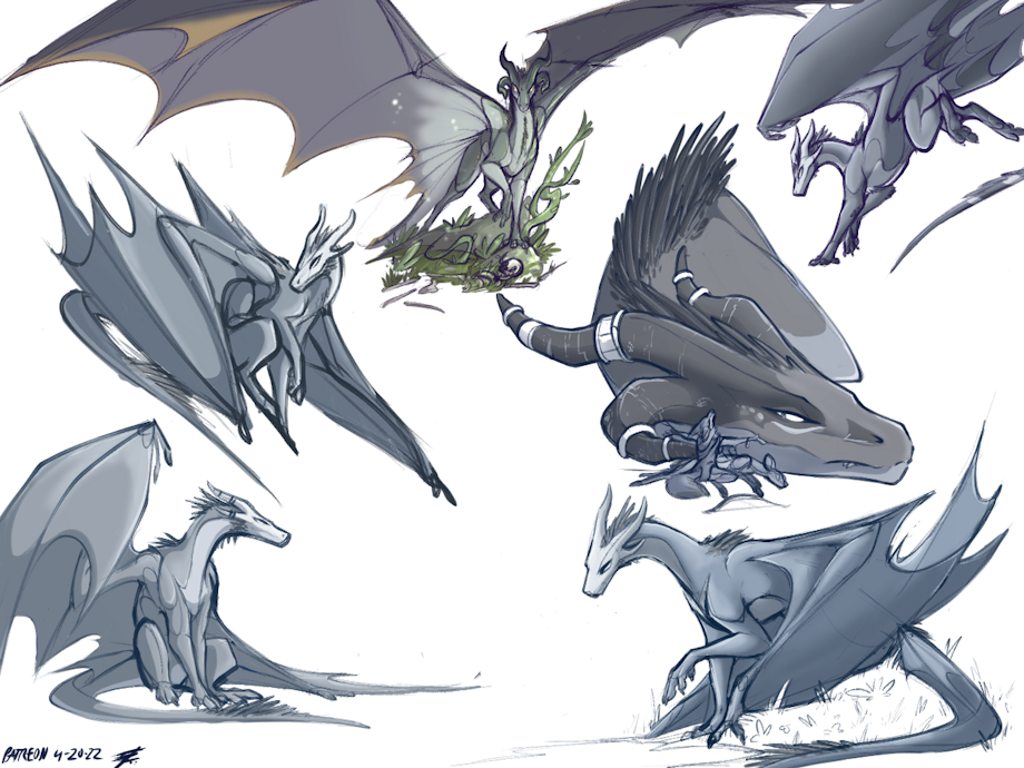 A sketch practice page while feeling out the species some more. Mostly Alyssa but a couple others!