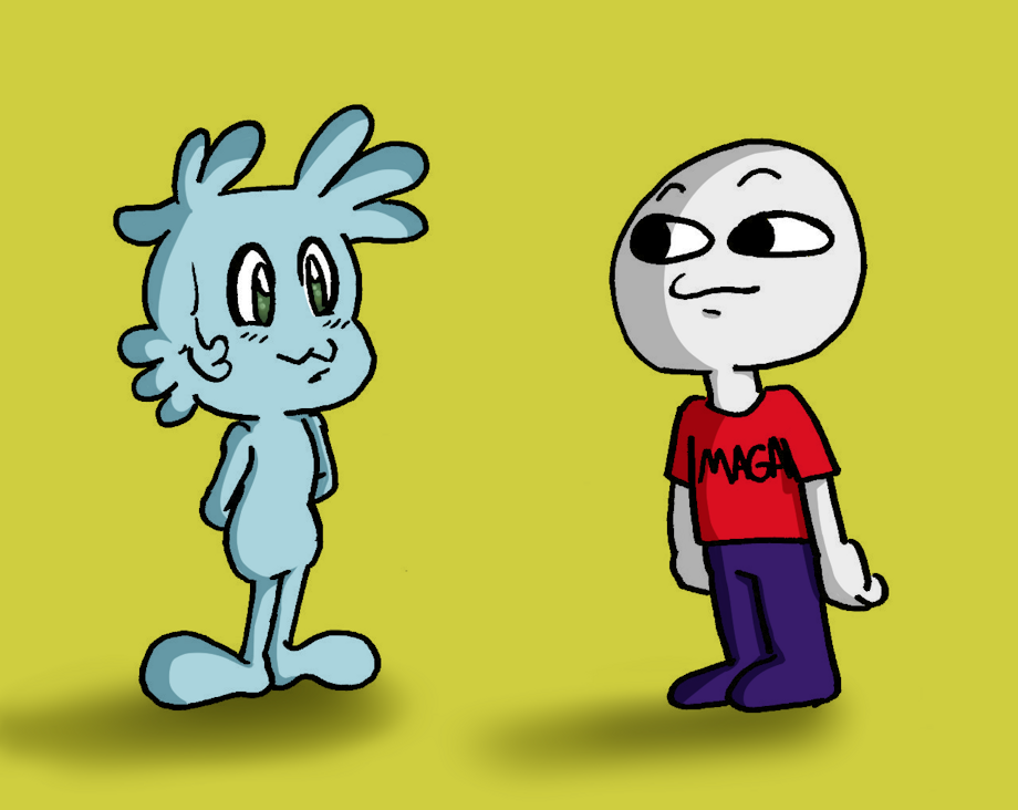 Yep! A character from a once well respected animator turned diaper fetish deviant and a character from a racist comic strip. There's no way I could be implying they're co-related with one another...or are they? 🤔