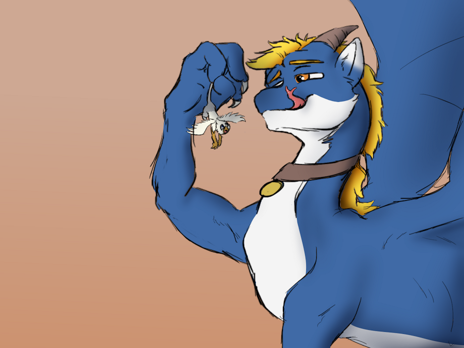 Nyama enjoyed his gryphon treat...but now he's rebelling against his master. Gyro Feather seems in trouble either way!