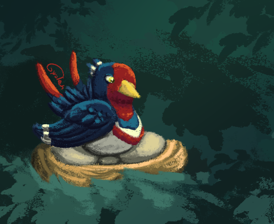 Mistral sitting on a nest, my portion of the Pokemon Collab