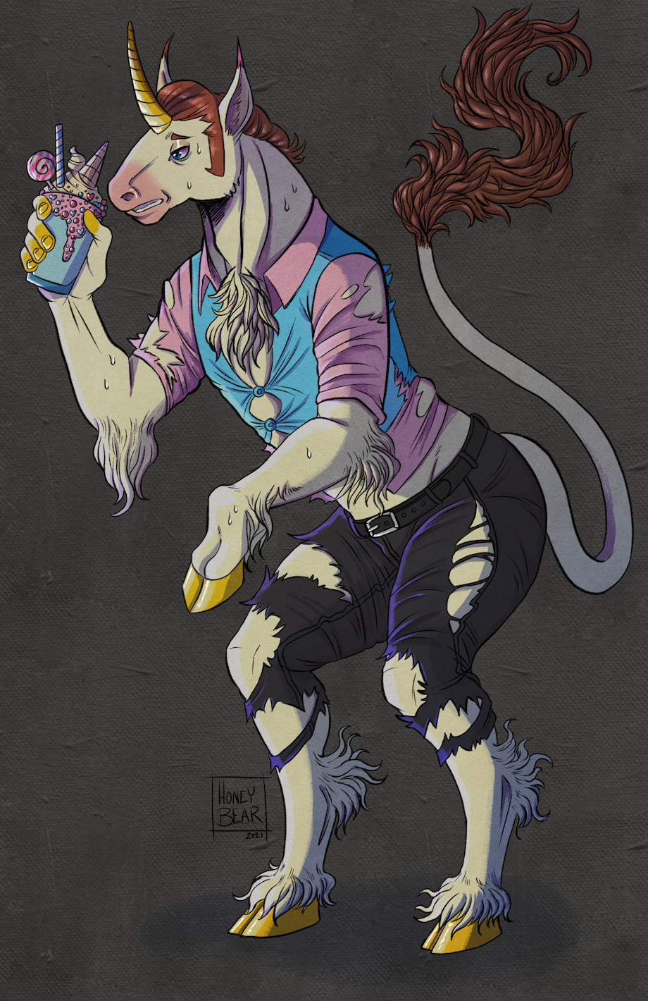 After me and three of my friends turned into cows after drinking milkshakes, as shown here, I decided to gift the artist -hornbuckle- a milkshake of his own! I bought him a Unicorn Milkshake which promptly turned him into a unicorn! I hope he enjoys his new form!