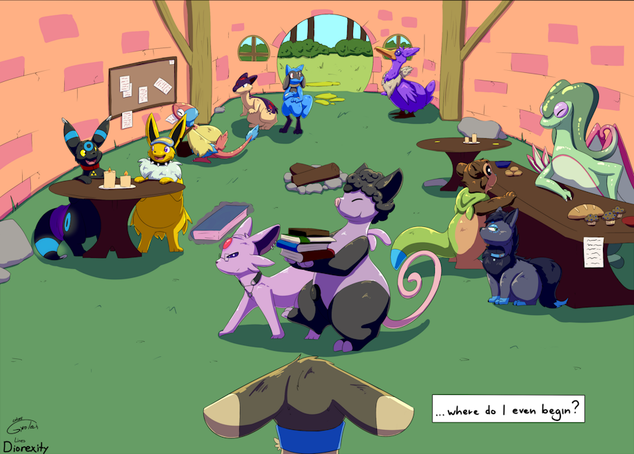 Blitz, Nub, Bay, Myr, Ebony, Sims, Hymin, Fang, Coriander, Arrox, Miles and Dio all hanging around the guild hall.