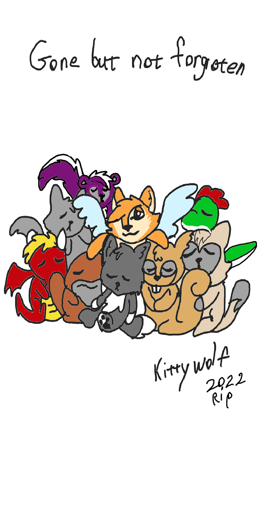 I've been in a funk even before finding out of his passing which was just icing on the cake not in a good way, So I know it's not my best i cant draw super well art sometimes, but I still tried to include nearly everyone I could fit into one drawing, As if to tell all his kids, It'll be OK. Gone but not forgotten we will miss you krezz. Hope you like it krezz.