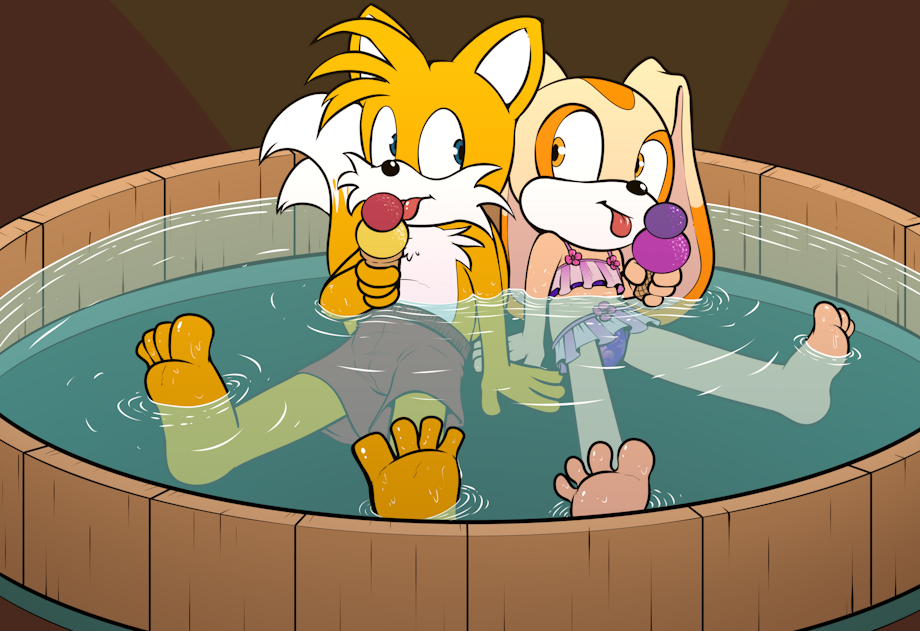 Nothing like chillin' together in a cool pool with ice cream on a hot, summer day. ^^