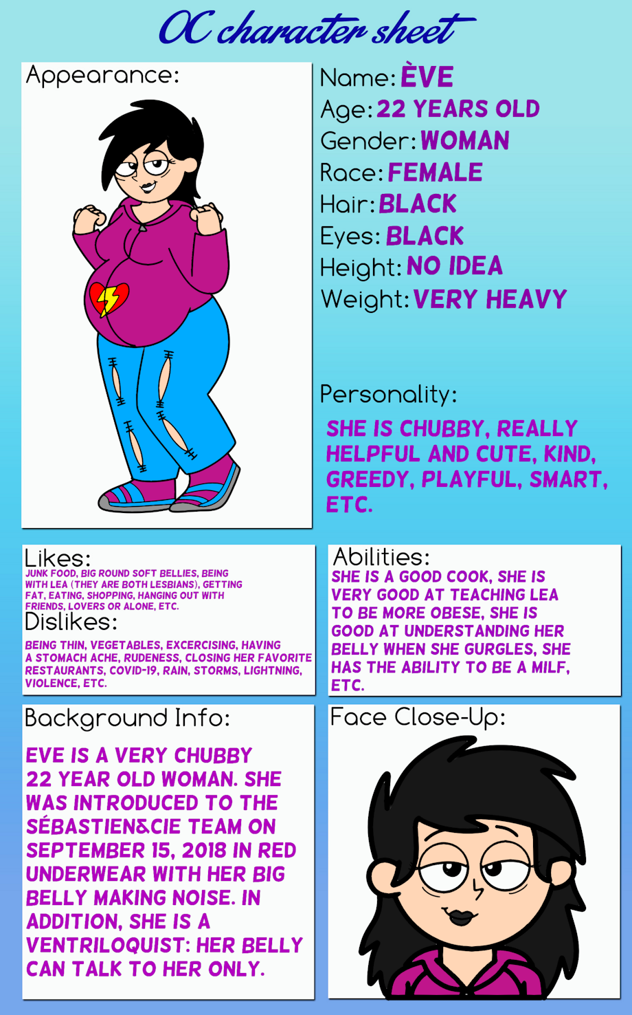 This is the new 2022 reference sheet of Eve. Everything is written in his reference sheet (what I have in my mind).