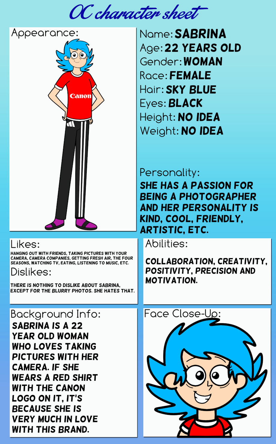 This is Sabrina's new 2022 reference sheet. Everything is written in his reference sheet (what I have in my mind).