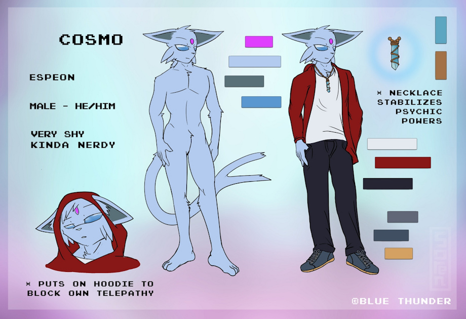 Commission for BluePone! Featuring his shy espeon lad Cosmo ^^