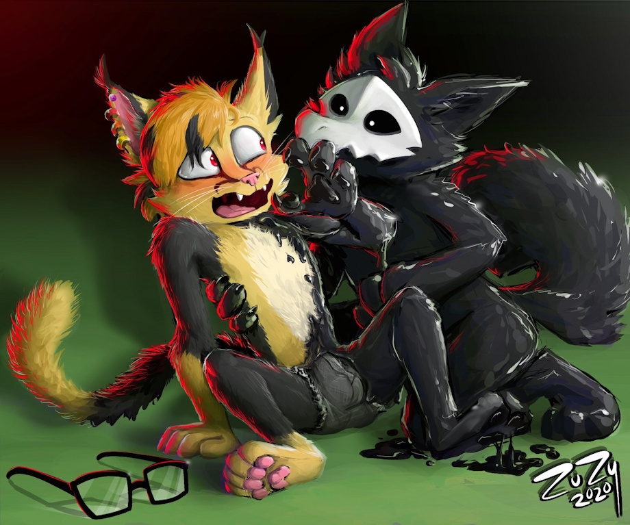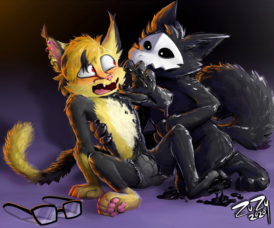 Ulrich, just then, thought that he had been walking around the laboratory for quite some time now; suppose this nice creature would enjoy some company. He sat down next to this creature, not too close at first so as not to startle them. The creature gave Ulrich a side-glance, almost as if thankful that he's joined them in their recreations, but while also warning him to not get too close to them. Ulrich did not pick up on the entirety of this gesture, though, slowly inching closer and closer to the creature. The creature returned its gaze to the book. The closer Ulrich got to the creature, he could sense a sort of heat coming off from it justifying the impression that this creature is alive. The warmth was comforting. Actually, it was slightly alluring. He couldn't help but get closer now, feeling a welcoming warmth radiating from this creature before suddenly, the creature tossed its book to the side and turned to Ulrich. It grabbed onto him, knocking off his glasses, as Ulrich was startled, not much from the creature itself jumping onto him as the comforting warmth emitting from the creature relaxed him quite a bit, but more so from the suddenness of this action. It was an odd feeling. The warmth this creature radiated now seemed to course through Ulrich's body. It was a wonderful feeling. He did not know why, though. As this creature seemed to be attacking him, all Ulrich could do was blush. He tried to defend himself from this attack, bringing his arm up between himself and the creature, only to realize at that moment that the reason it felt like this creature's warmth was surrounding him was legitimately because the creature's essence had begun engulfing him.