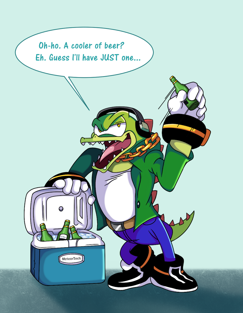 Vector is alone at the Chaotix Detective Agency and comes across a cooler of beer. What the hell? Why not have JUST one eh?