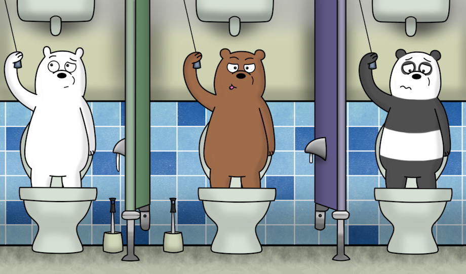 For the Grizz scene, Panda and Ice Bear are going to flush themselves down the toilet at the same time to try to get all 3 out in a toilet to do the "bears stack"
