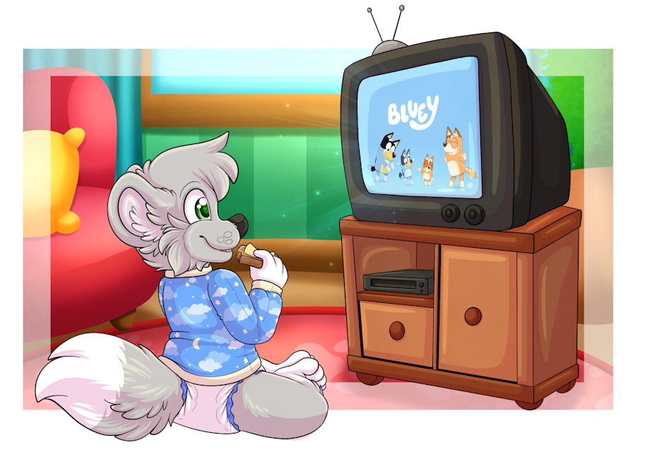 Caiden is living his best life while sporting his jammies and diaper, eating his buttered toast, and watching everyone's favorite cartoon family in the living room on a Saturday morning.
