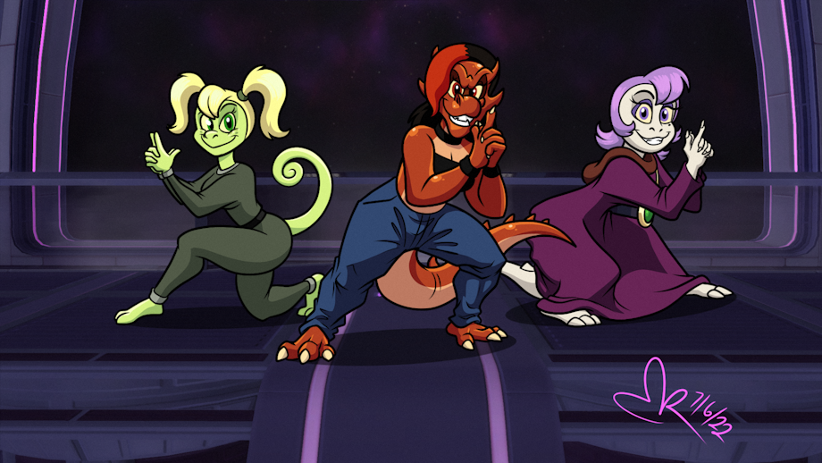 Another awesome commission I bought from the awesome Benny J. Ross! Camilla, Deanna and Sabrina are 3 of my Mighty Ducks OCs. Camilla (left) is the Chameleon's sister and Siege's love interest. Deanna (middle) is Dragaunus's daughter. And Sabrina (right) is Wraith's great-niece and the Chameleon's love interest.