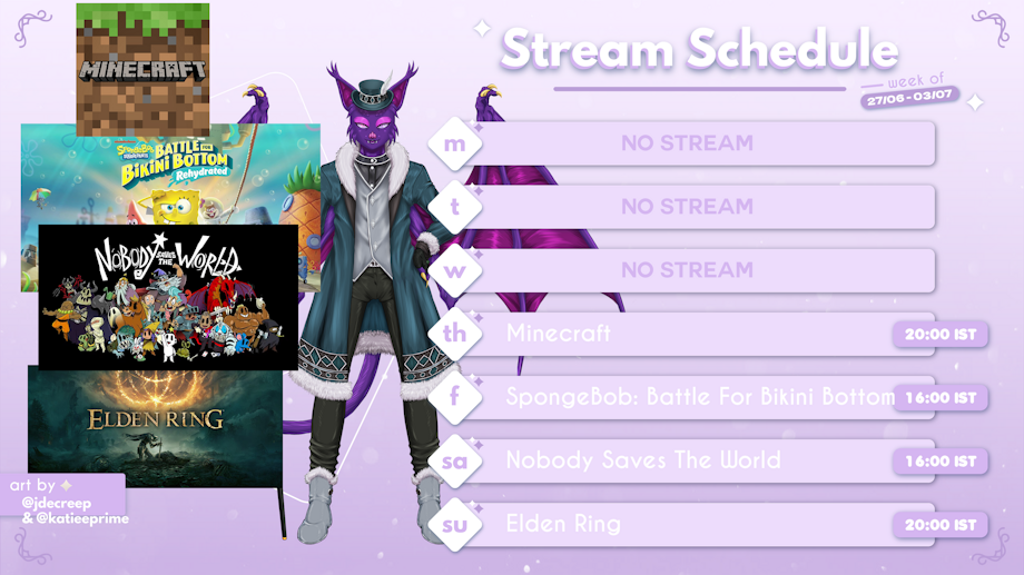 Here's my stream schedule for the week. Searching for redemption in Chorus, trying again with Alien Isolation, starting a gem hunt in Nobody Saves The World & we'll see what happens with Elden Ring.