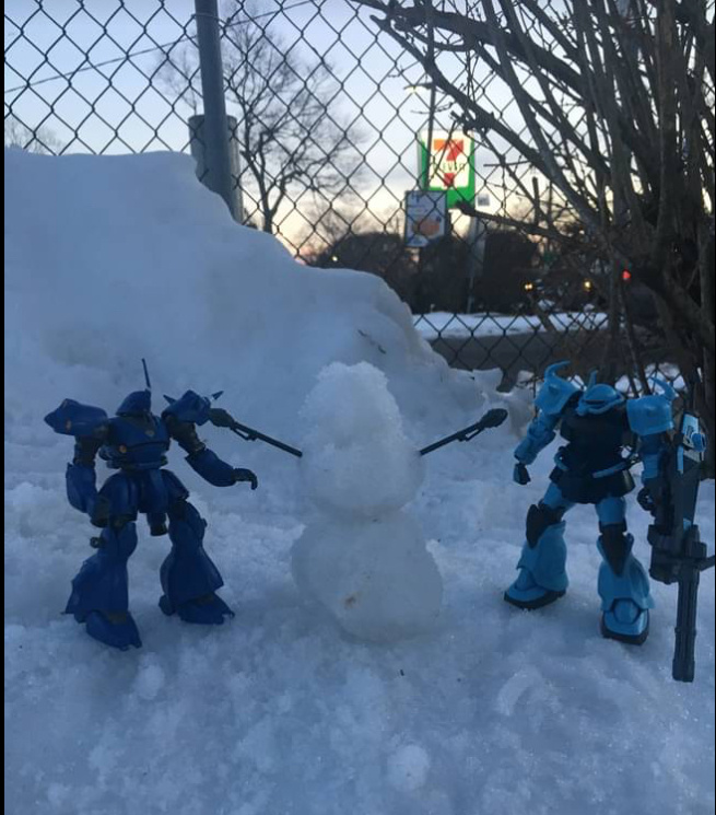 Gouf custom and Kämpfer are building a snowman outside in the cold 🥶 snow ❄️