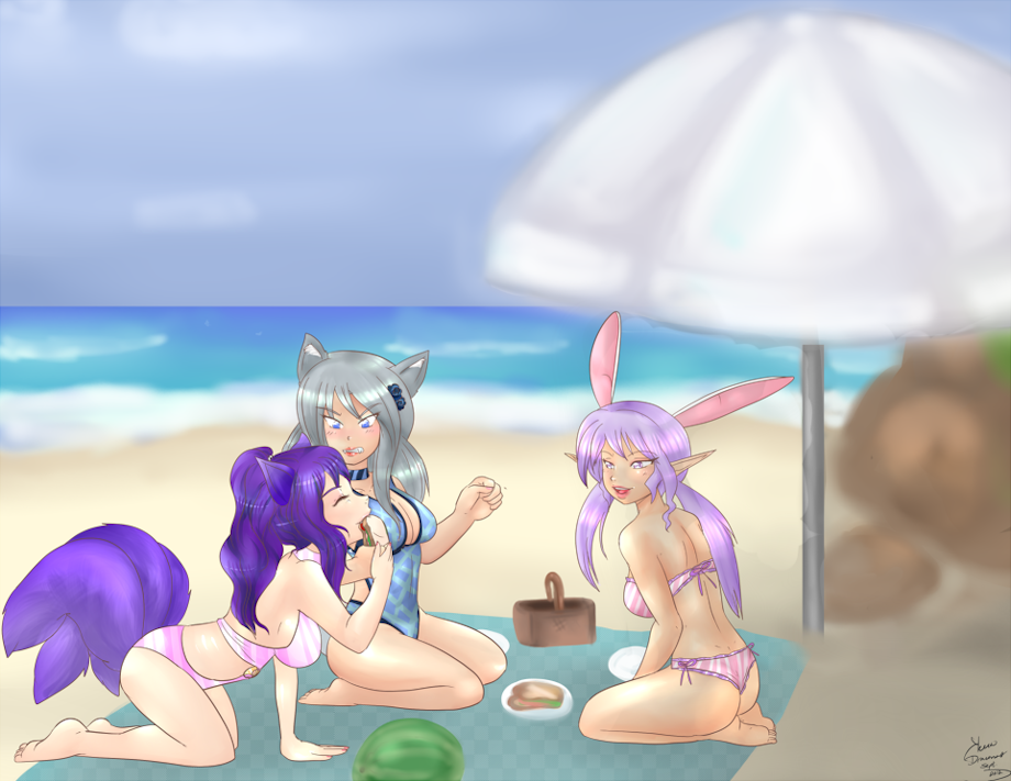Usually Miza is a Multied Tailed Neko Girl, but there were circumstances involved in the creation of this pic, and so she was made Full Anthro here.