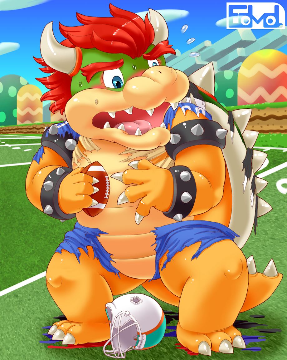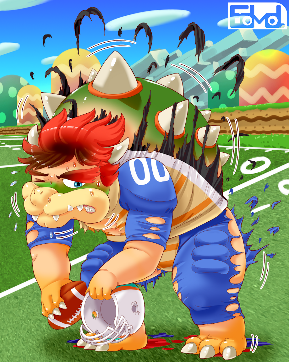 I blushed and perspired in complete shock as I looked over my new, monstrous body. I had become Bowser, the King of Koopas! My beloved Chargin' Chuck costume was destroyed and the football from earlier looked positively miniscule in my giant hands!