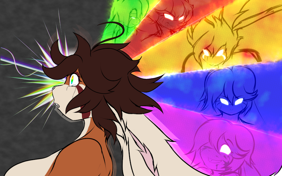 Part of a DnD campaign I'm in, Danni was a child when she was lost to the Astral Plain for years, returning with a special energy that manifests itself as various colors. She can now sense when objects or areas are tied to the plain, but if she's not careful her emotions can take control.