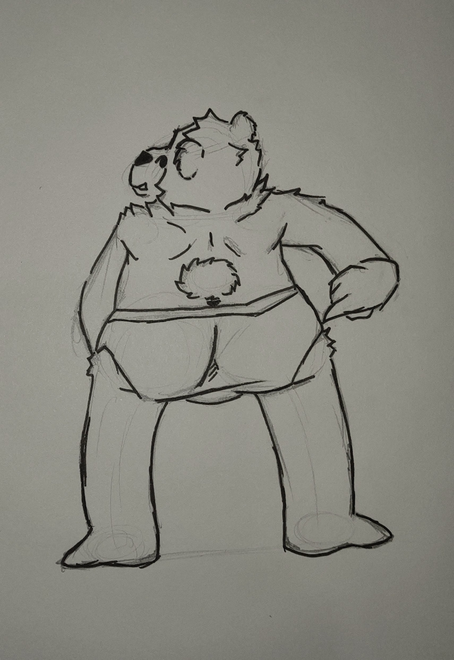 Cute bear butt. Like the speedo. Seems he wants the viewer to do something to them with that point. I think it works, good job.