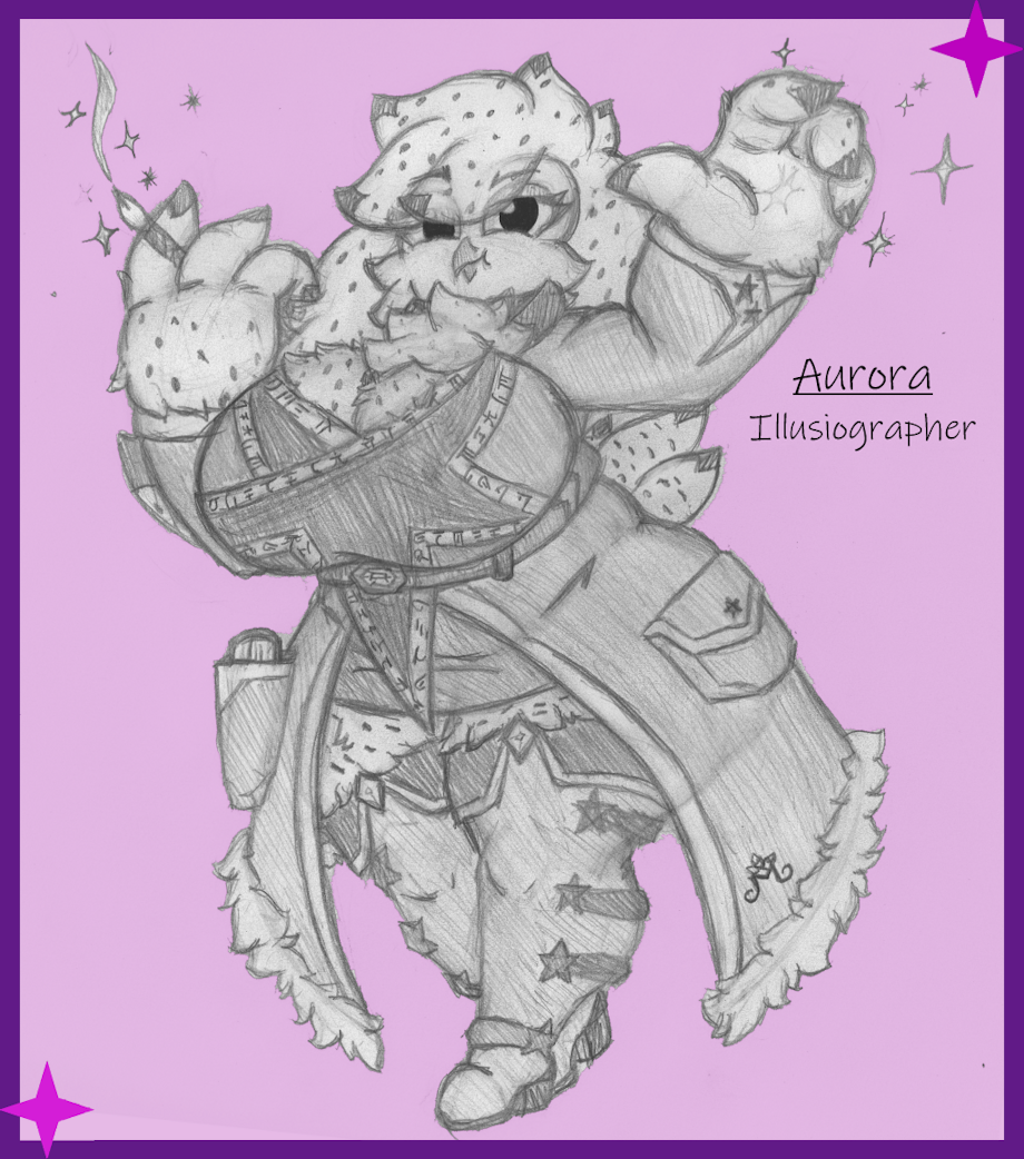Another fantasy piece for a good friend Violet, featuring her owlvarian OC Aurora. A close friend of Milo! She specializes in complex illusion magic used to tell stories and plays. Enjoy nvn