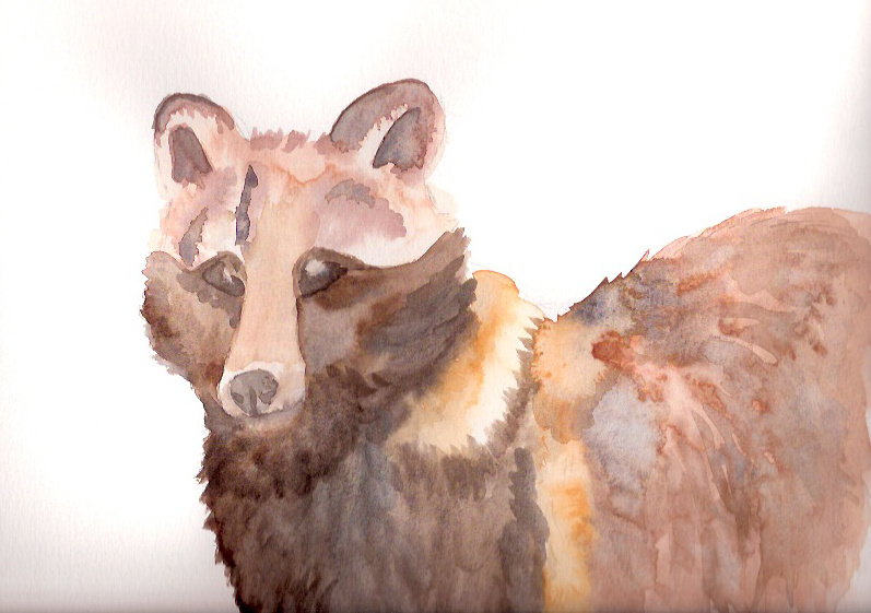 A Tanuki, painted with a aquarelle. I have yet not much experience with aquarelle, but anyway I think this pictures looks nice. ^^