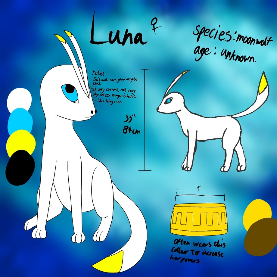 Luna is a young female from a long lost species (the moonwolves) who dissappeared before the begining of the Demonic wars.