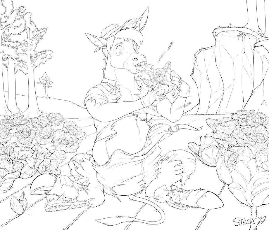 Pheagle didn't need any of that nonsense like a dumb magic teleporting cloak or an infinite gold coin generator. No, he was perfectly satisfied sitting in the middle of a large cabbage patch eating some very delicious magical TF cabbages! He was enjoying himself so much that he didn't even notice he was turning into a donkey!
