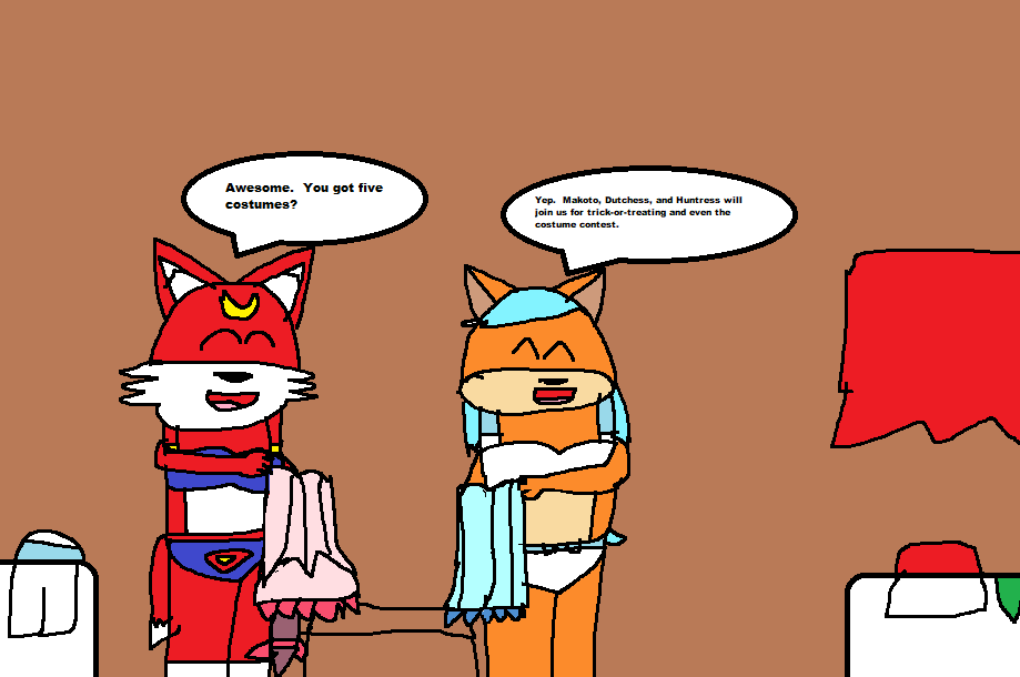 Sakura Crimson and Pioni Bandiroo try on their Mew Ichigo and Mew Minto costumes, while talking about getting Makoto, Sakura's twin sister, as well as Dutchess and Huntress, the daughters of Road Rovers' Hunter and Colleen, to join them.