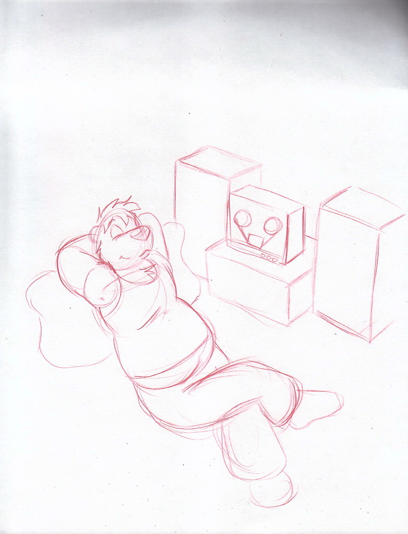 This is my fursona Bubba listening to a vintage stereo with a reel to reel tape player