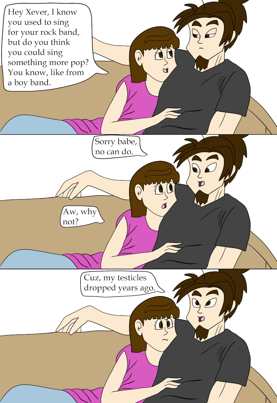 Sorry Nikki, Xever can only do loud, growly, rock/metal singing. Not high pitched, preppy boy band singing. If only you caught him like, 20 years sooner XD