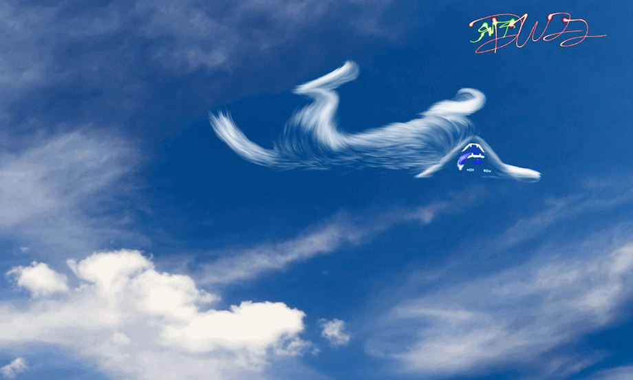 Sky wolves love nothing more than playing in the strongest of air currents. Like a husky playing in a stream of water, Cyrulius rolls in the current, riding it as far as it takes him.