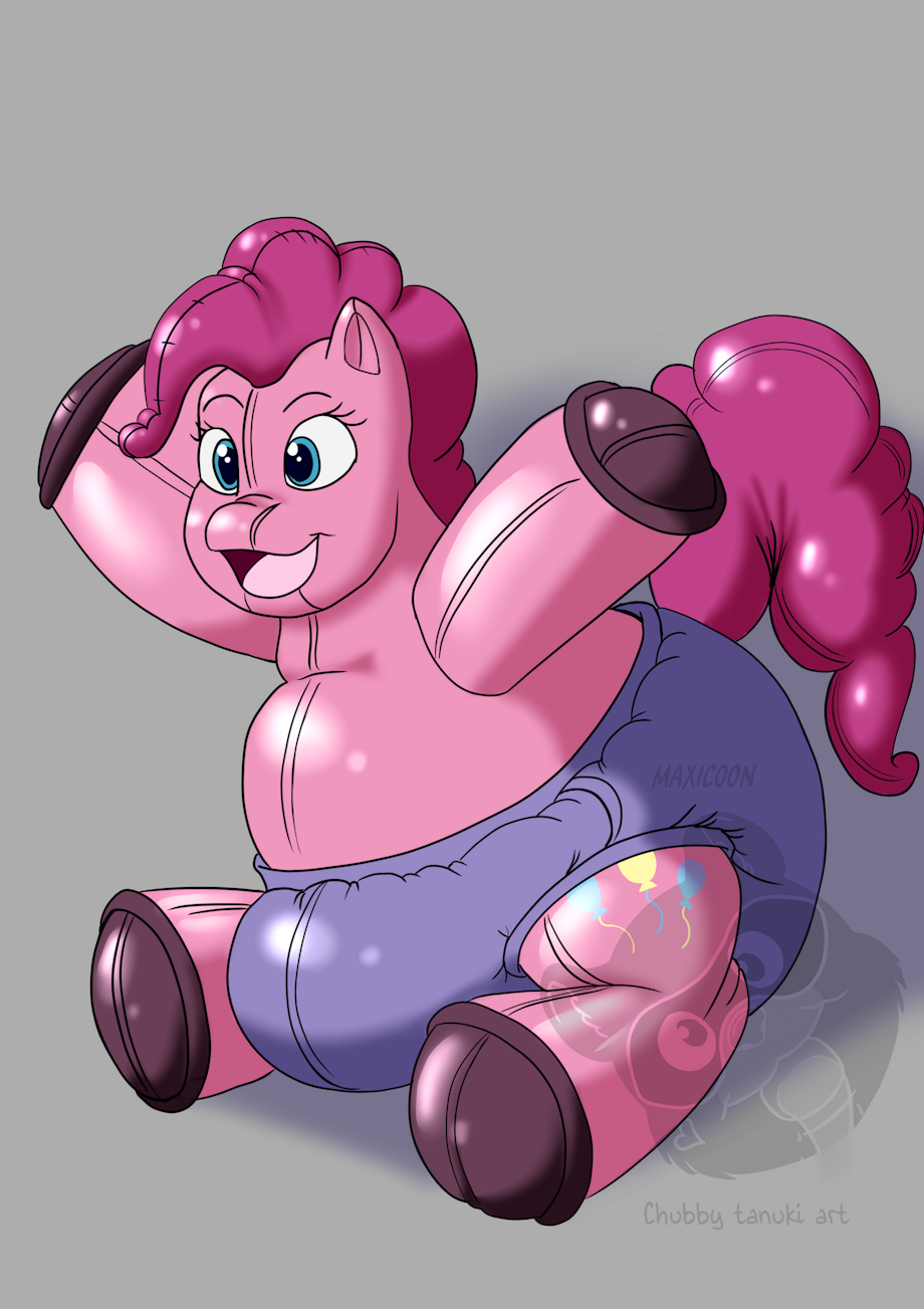 Looks like Pinkie has been into some magical shenanigans again. Oh well she still adorable and is even more bouncey! This diapers a bit of an odd addition but she doesn't seem to care. Her head is just filled with even more air now! :D