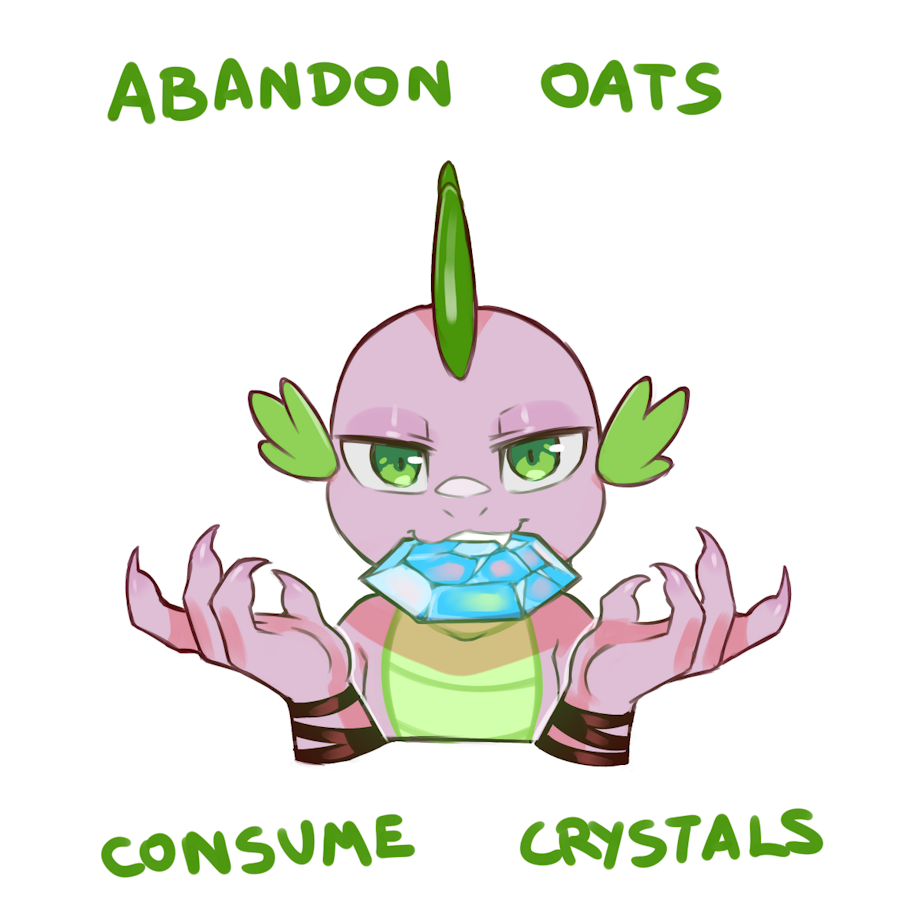 Now I wonder: Does the Elements of Harmony reside in the crystals or the whole jewellery the Mane 6 had. When they used the Power of Lov...Harmony it sure did looked like the Gemstones had it in them. Smae with the cursed Alicorn Amulet. And what if spike ate/digested 1 or all 6 of them? Would the crystals be destroyed and the power freed, or absorbed by the dragon and Spike the Dragon God has been born...?