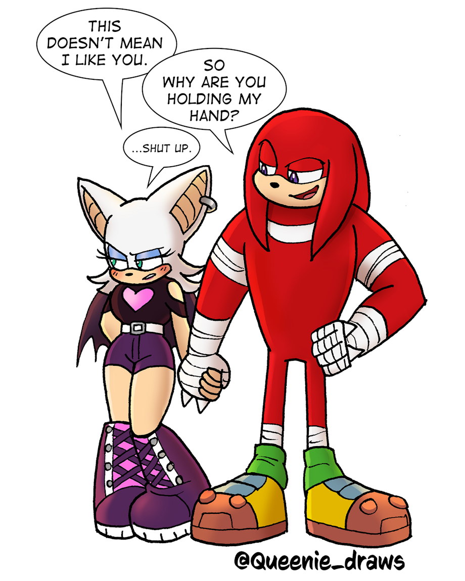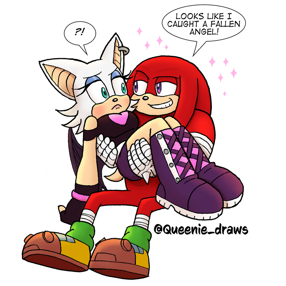 Of course I had to draw Sonic Boom style Knuxouge! I also thought it would be cute if Rouge was the shy one and Knuckles was the flirty one. Rouge's design is by me.