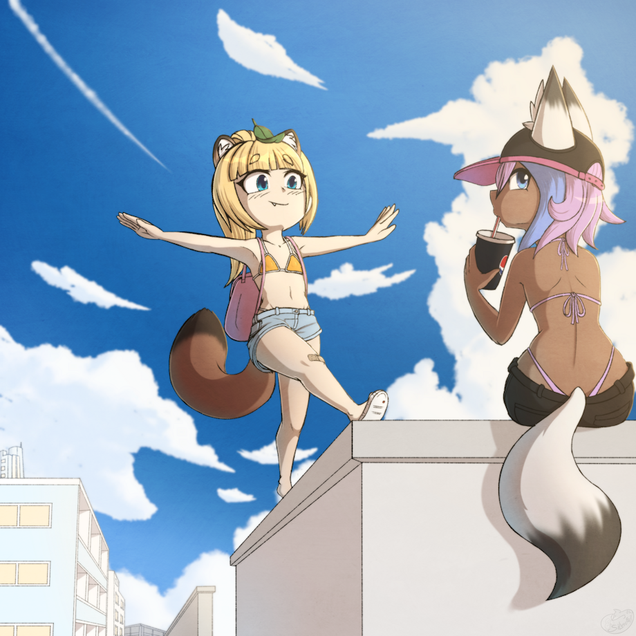 just another sketch i did of my character Yuri the tanuki girl (left) and