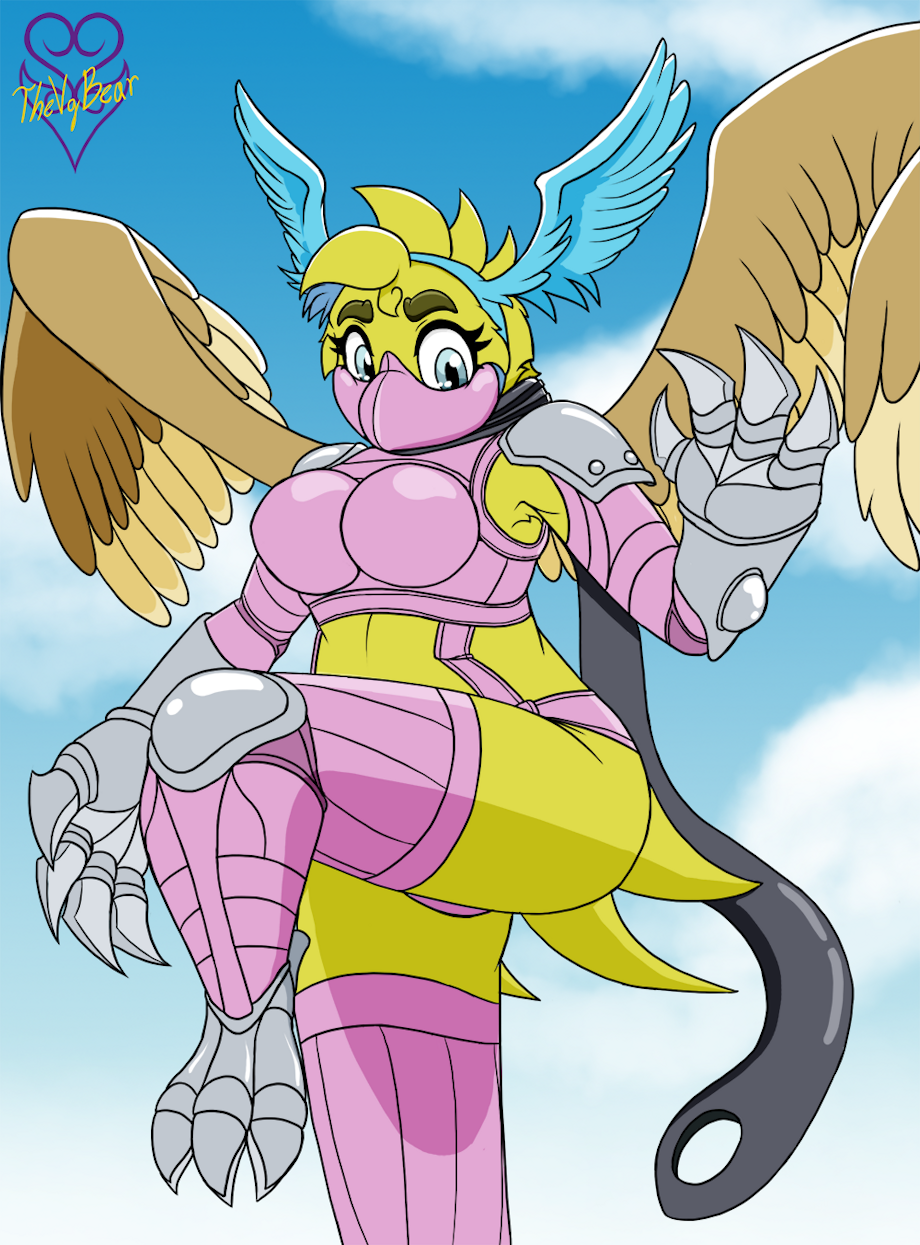 Patreon reward for AngelGatomon, Chica cosplaying as Zephyrmon from digimon