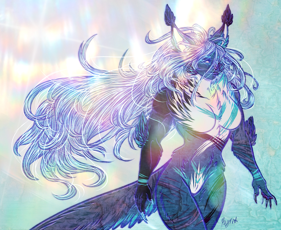 She's Beauty, He's Grace, The Hair Is In Hisher Face I would've liked to spend more time on this one, but alas I did four other drawings this same day! Character design by me Saffire uses she/he pronouns